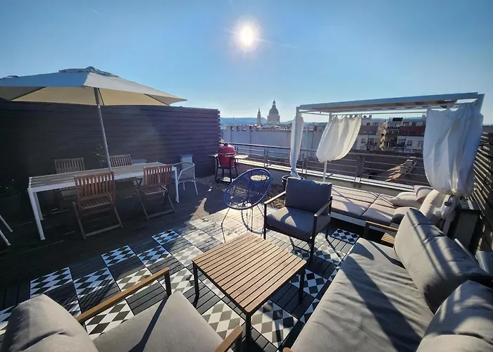A 2 szobás Cloud Apartment Gozsdu Budapest Budapest közvetlen szívében, az Országháztól körülbelül egy 25 perces sétára várja az utazókat. A Szimpla Kert romkocsmától belátható közelségre található 97 m²-es apartman belső udvart és barbeque-t kínál.